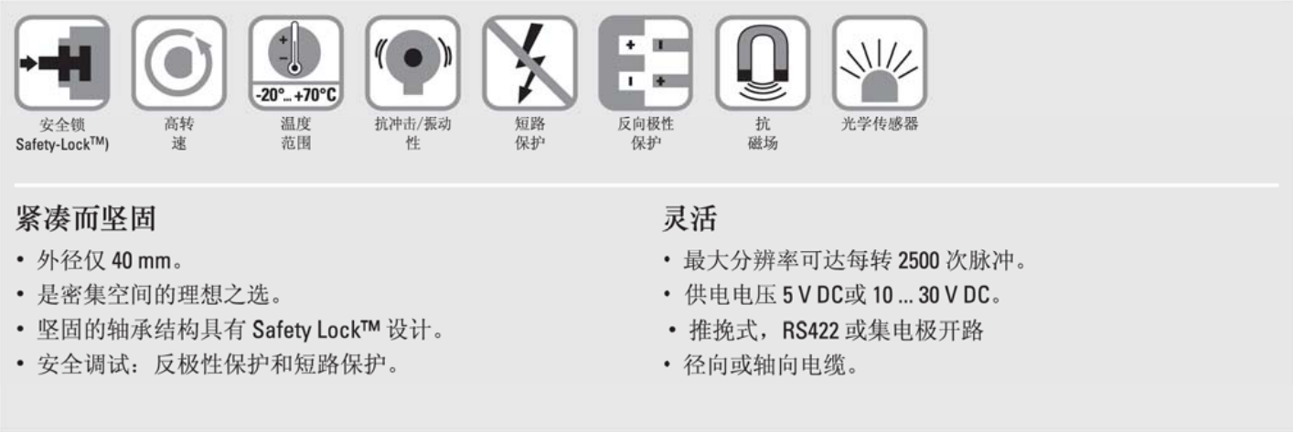 經濟型緊湊型光學增量式編碼器 緊湊型增量編碼器Sendix KIS40/KIH40采用光學傳感器技術,為最大限度的降低經濟成本設計 分辨率高達每圈2500次脈沖 特別適合應用于狹窄的安裝空間以及較小的機器和設備中 抗震性強,安裝錯誤適應性強 軸或軸套選擇,直徑可達8mm,1/4" 軸,帶平面 可選塑料外殼 咨詢熱線:18668169779 在線咨詢 產品詳細 上一篇:緊湊型光學增量式編碼器 下一篇:標準型光學增量式編碼器 用手機看 拍下二維碼,信息隨身看 試試用手機掃一掃, 在你手機上繼續觀看此頁面。